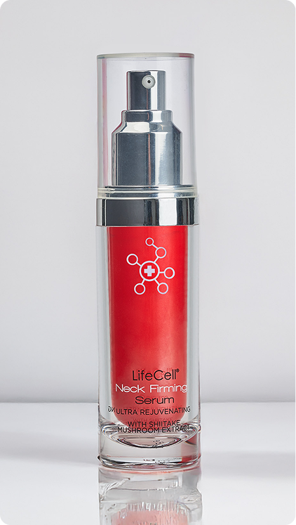 LifeCell Neck Firming Serum es una fórmula ligera y de rápida absorción con Fermiskin™, extracto de hongo shiitake, y péptidos reafirmantes que tensan, levantan y suavizan visiblemente una de las zonas más sensibles y propensas al envejecimiento de tu cuerpo.