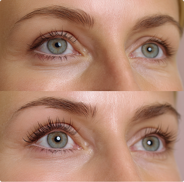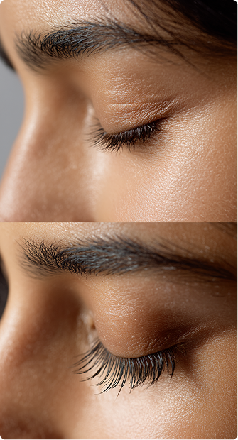 - Biotina y Biotinoyl Tripeptide-1: Apoyan la estructura de queratina y promueven pestañas más largas y fuertes.