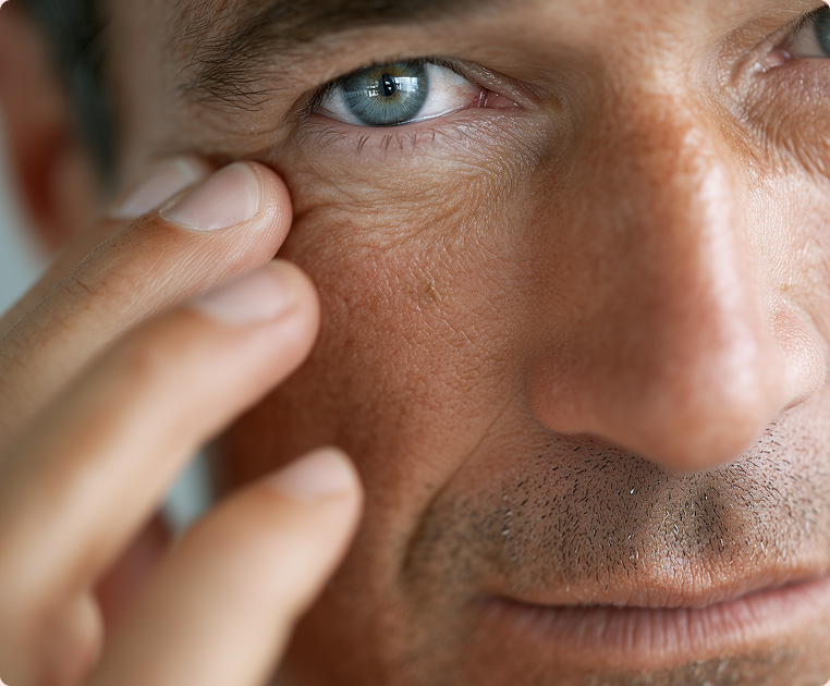 Los hombres no necesitan borrar cada línea. Un rostro con líneas y curtido puede ser atractivo. Demasiado relleno destruye ese carácter.